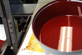 Druck- oder Disperionslacke sollte man immer bei dunklen und vollflächigen Drucksorten, sowie bei matten und rauen Papieren verwenden.